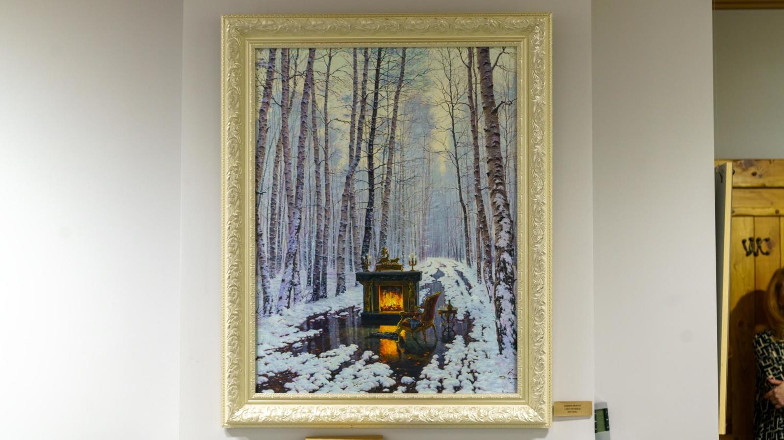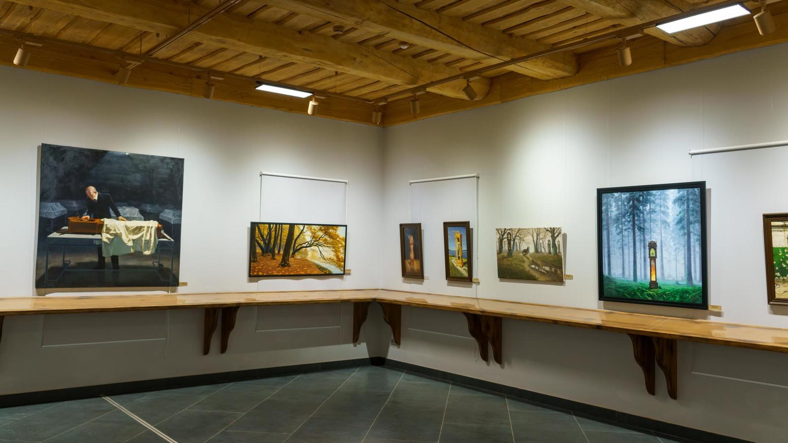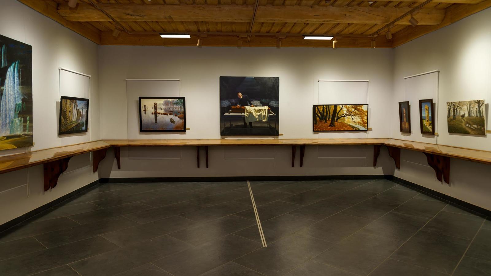 На первом этаже вот-вот состоится открытие, поэтому начнем знакомство с картинами, размещенными на втором этаже.