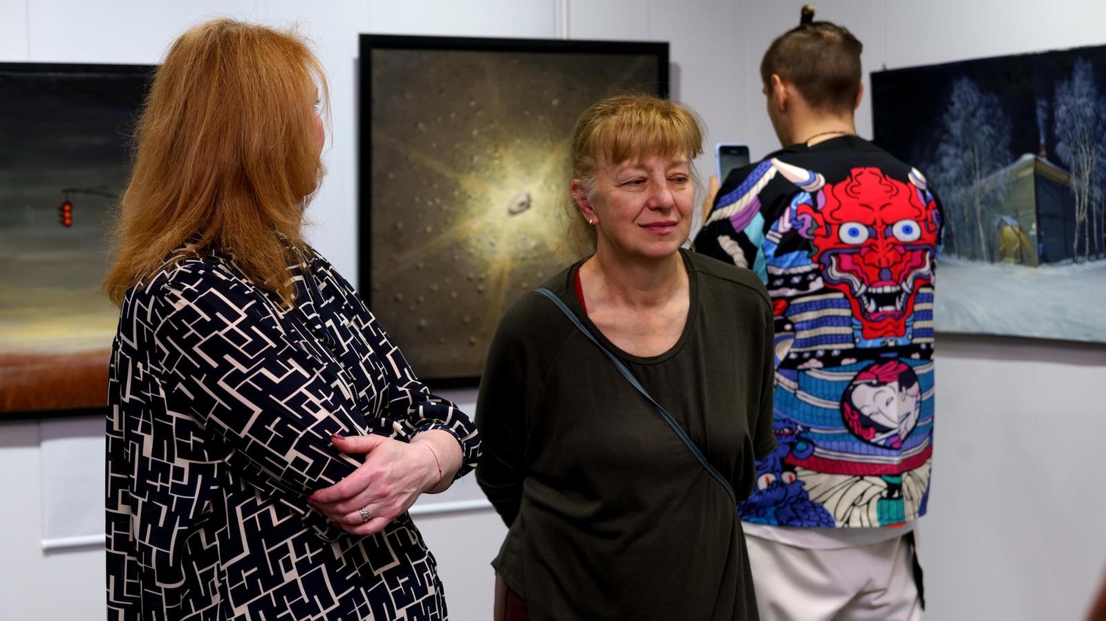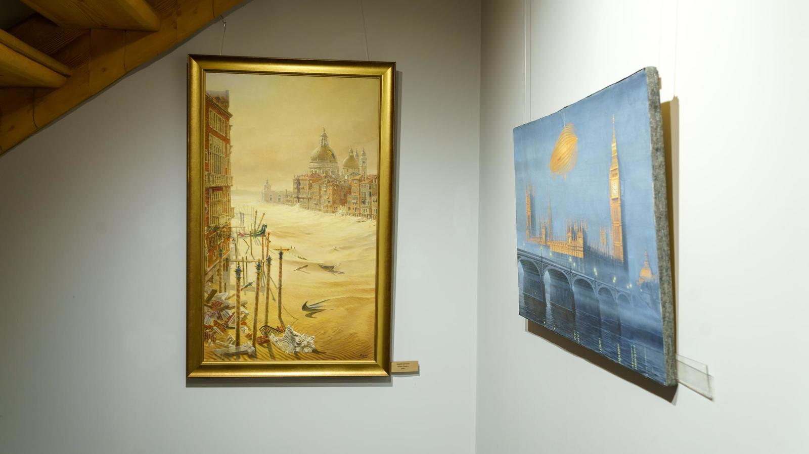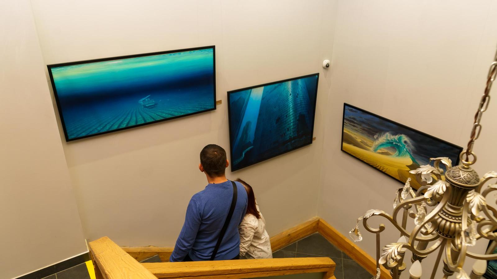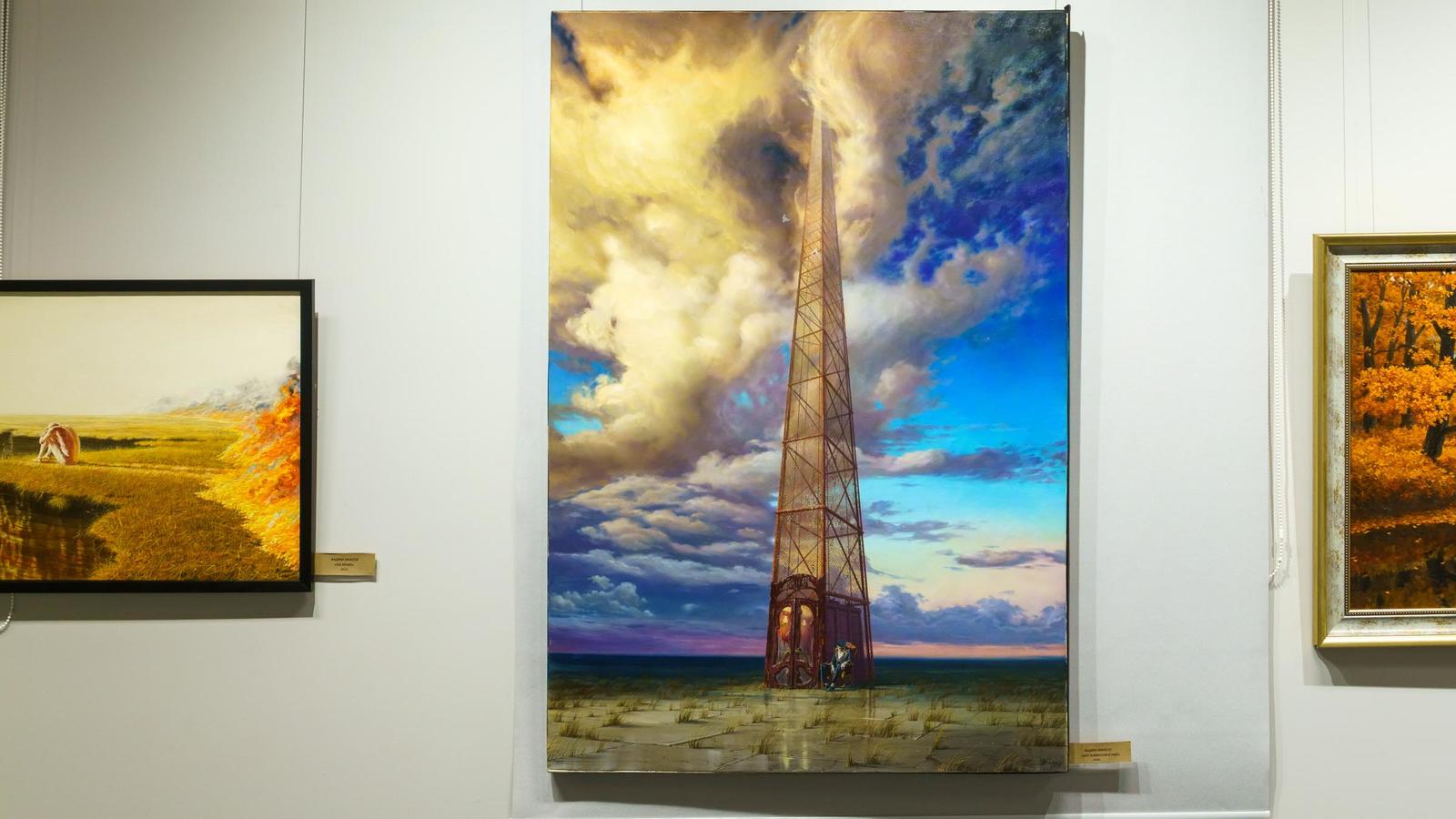 На первом этаже вот-вот состоится открытие, поэтому начнем знакомство с картинами, размещенными на втором этаже.