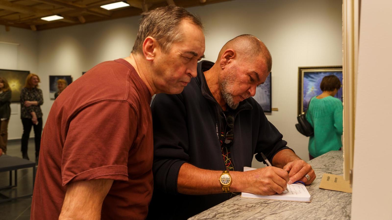 Фото №1003981. Вадим Бжассо принимает поздравление с открытием выставки