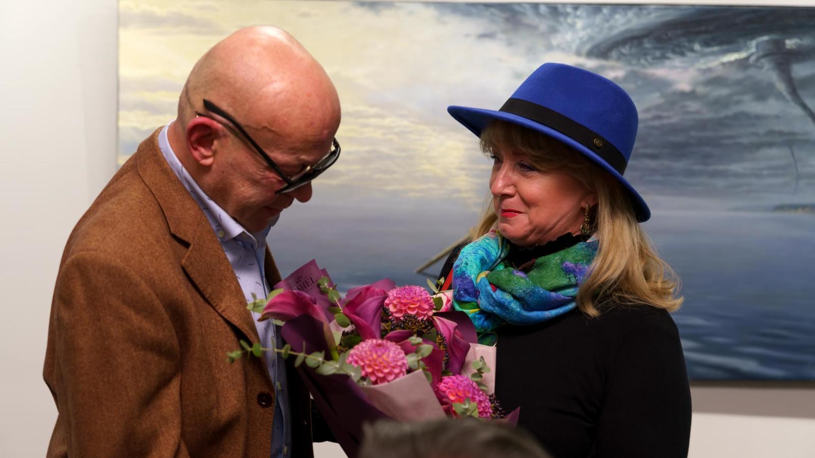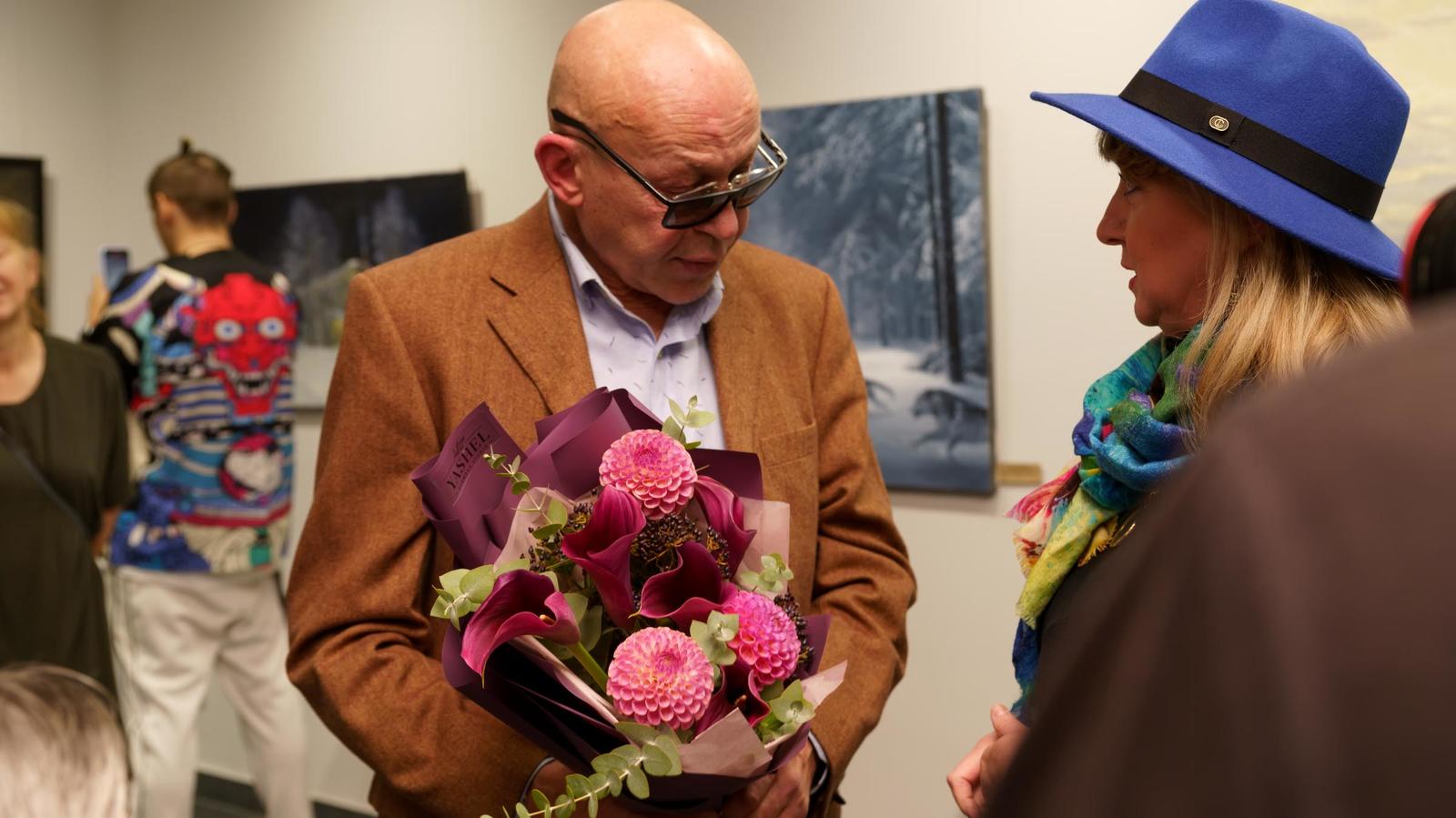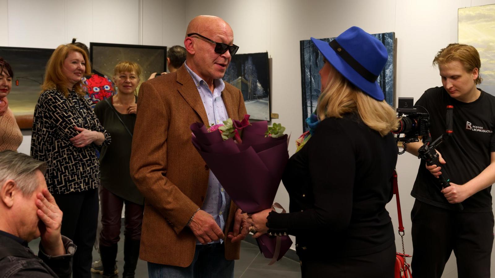 Фото №1003986. Вадим Бжассо принимает поздравление с открытием выставки