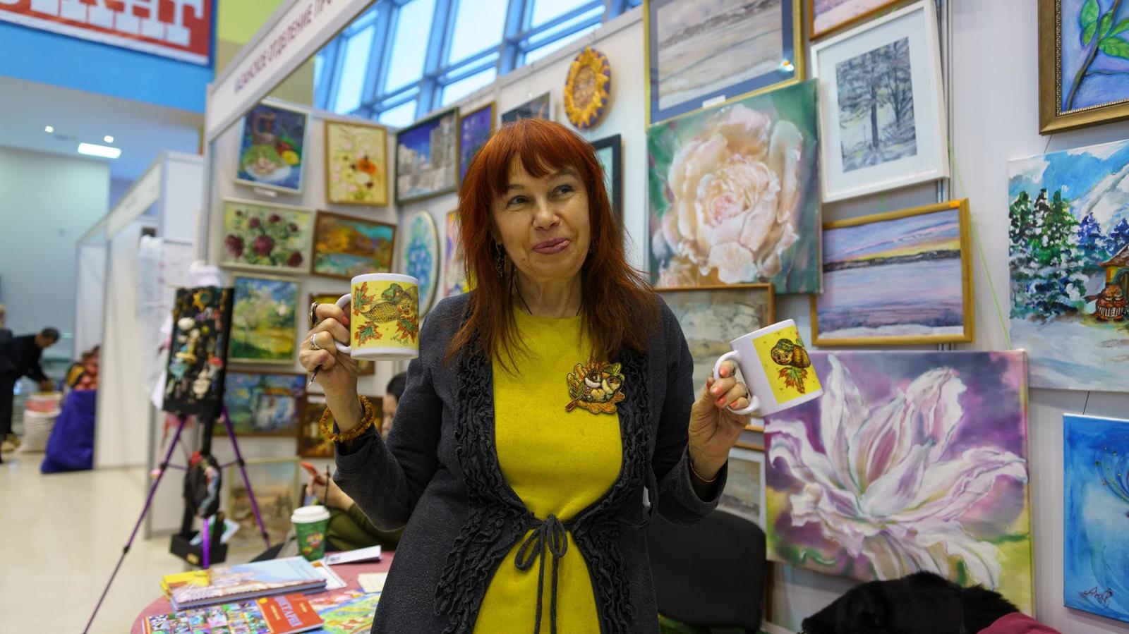 Фото №1006571. Председатель Казанского отделения ПСХ СНГ Лада Аюдаг за рисованием Золотой рыбки