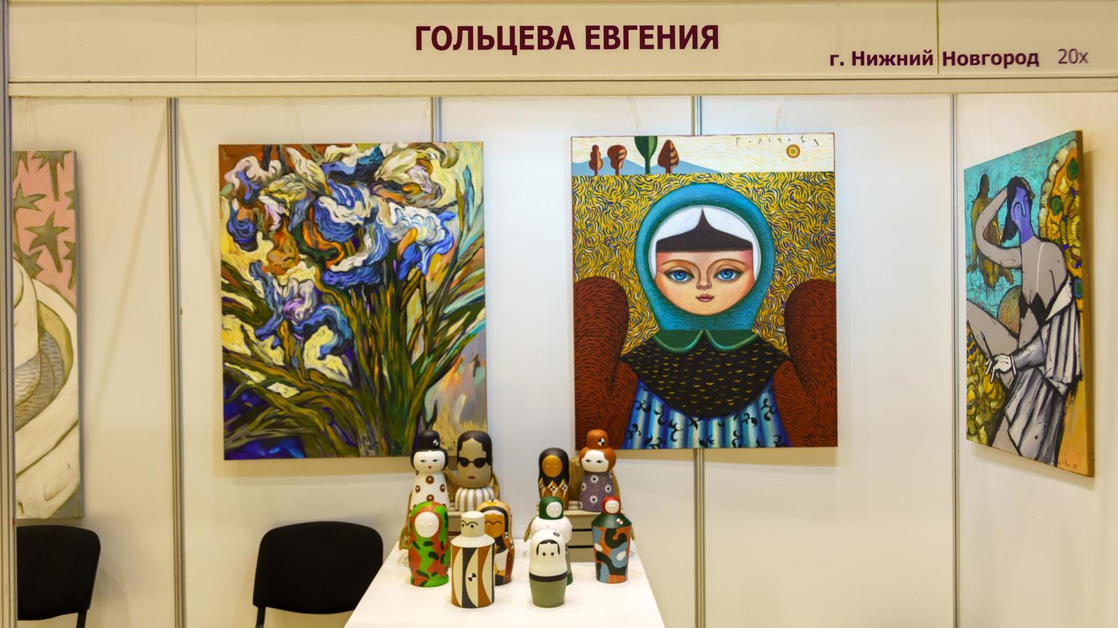 Фото №1006611. Фрагмент экспозиции работ Творческого дуэта Аня-МаняНа выставке можно увидеть работы членов Казанского отделения ПСХ СНГ.