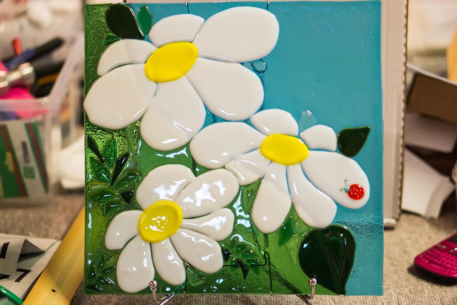 Фото №119249. Панно "Ромашки". Фьюзинг. Дом стеклянного творчества, ноябрь 2012Зато, если к изготовлению изделий из стекла подходить