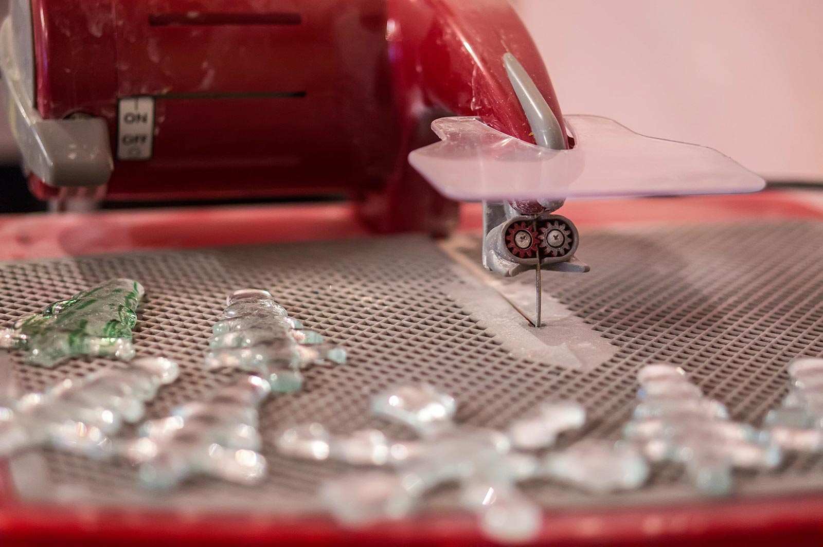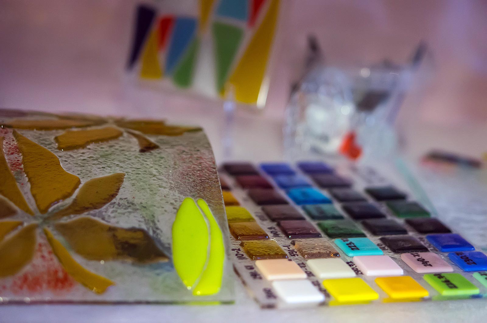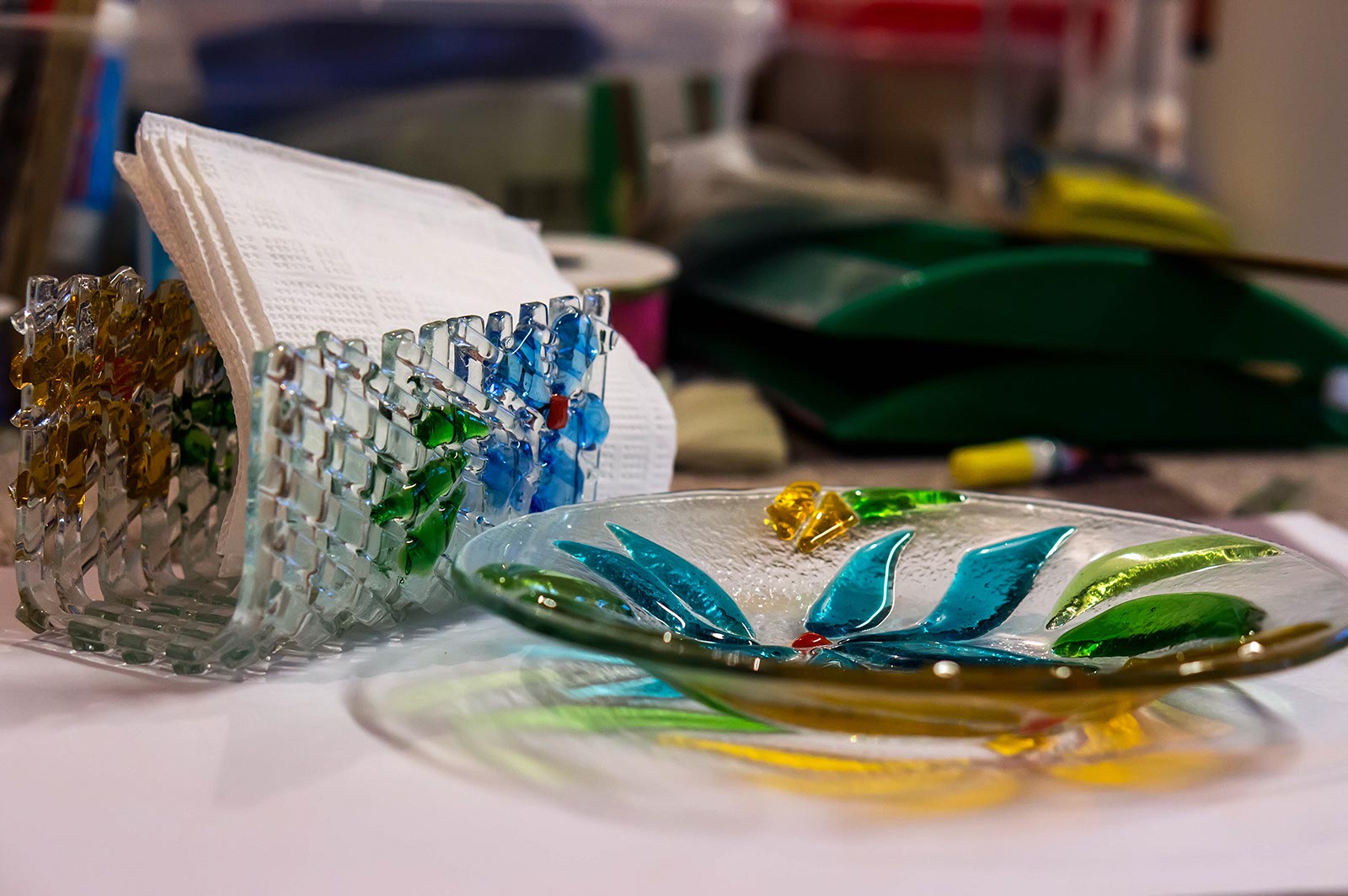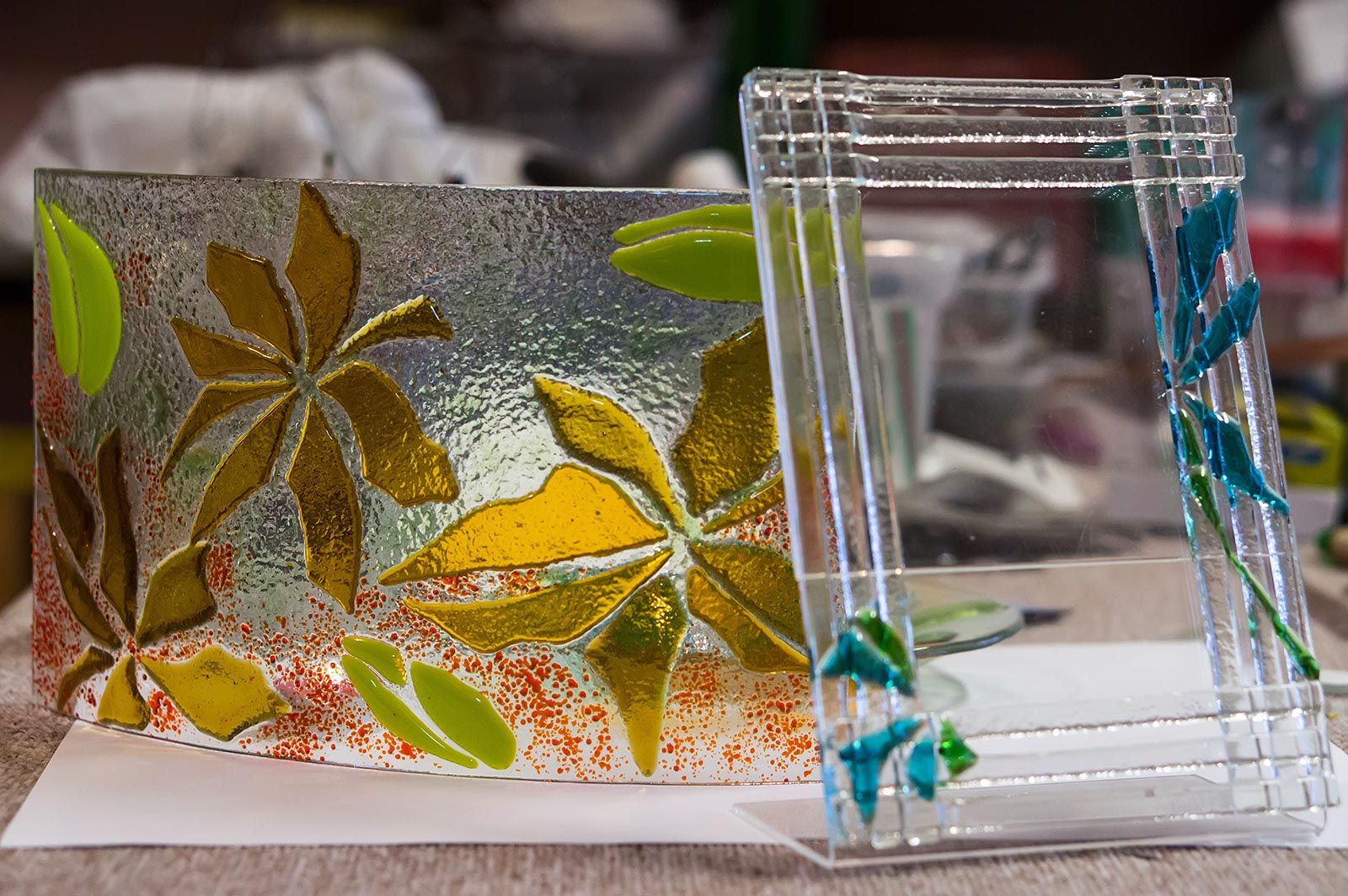 — Первоначально, стекло вырезают, затем составляют орнамент, закладывают в печь и спекают при определенном температурном режиме.