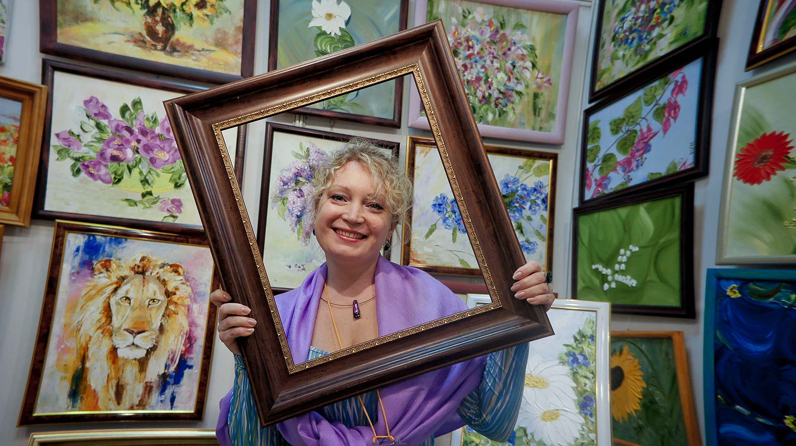 Фото №90434. Натлья Сафиуллина, "Художники выходного дня РТ". Таков будет автопортрет НатальиОсновная профессия участников, приносящая деньги, далека от художественного творчества. Свои картины «художники выходного дня» ваяют по выходным, в свободное от работы время. Однако, многочисленные выставки, всевозможные ярмарки мастеров, в которых активно принимают участие