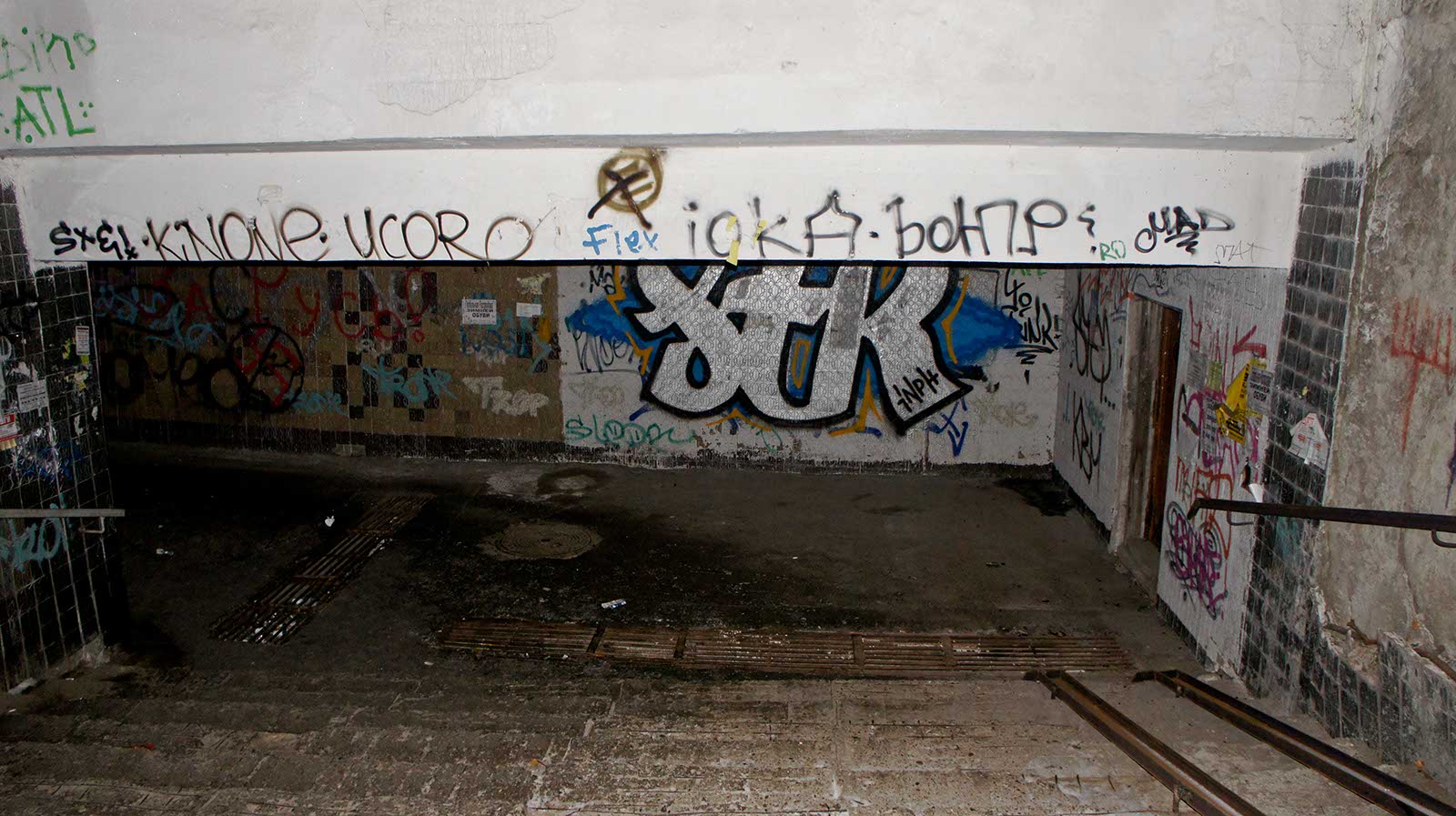 Спускаемся вниз по довольно продолжительной крутой лестнице.