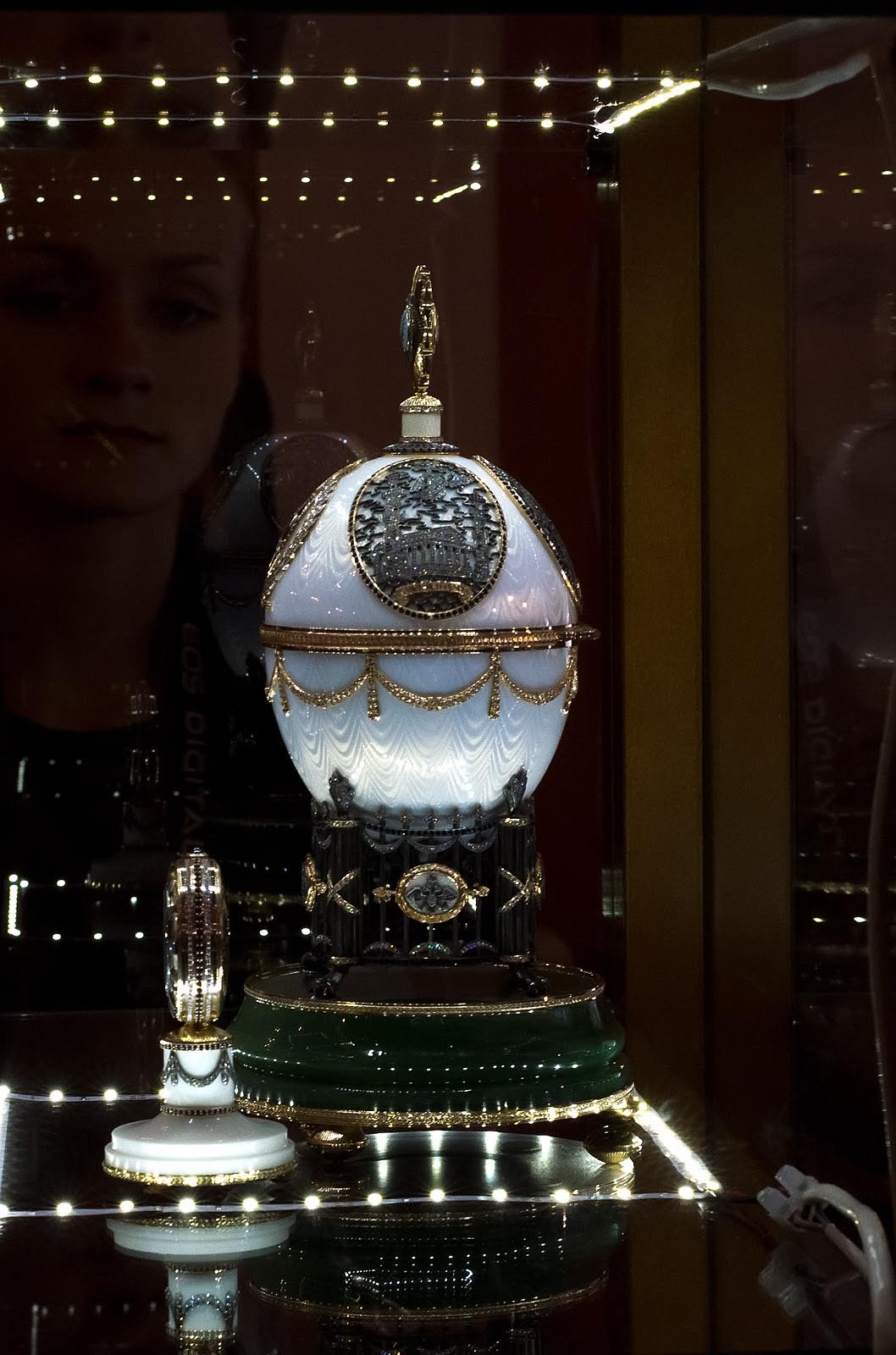 В Казань организаторы выставки привезли три больших яйца, выполненных в единичном экземпляре «hand made». Со слов директора и совладельца компании «Три, А Gold» Руслана Качановского над изготовлением одного яйца трудятся 13–20 человек около года: один мастер занимается резкой камня, другой — резкой гильоша, третий — нанесением эмали, четвертый — креплением камней т.п. Приблизительная стоимость большого пасхального яйца, со слов Качановского, 5 млн. дол. [честно сказать, такая цена вызывает большое сомнение, авт.]. Продавать пасхальные яйца фирма «Три, А Gold» не спешит, хотя потенциальные покупатели есть. В планах руководства создание коллекции Больших пасхальных яиц из 12 предметов.