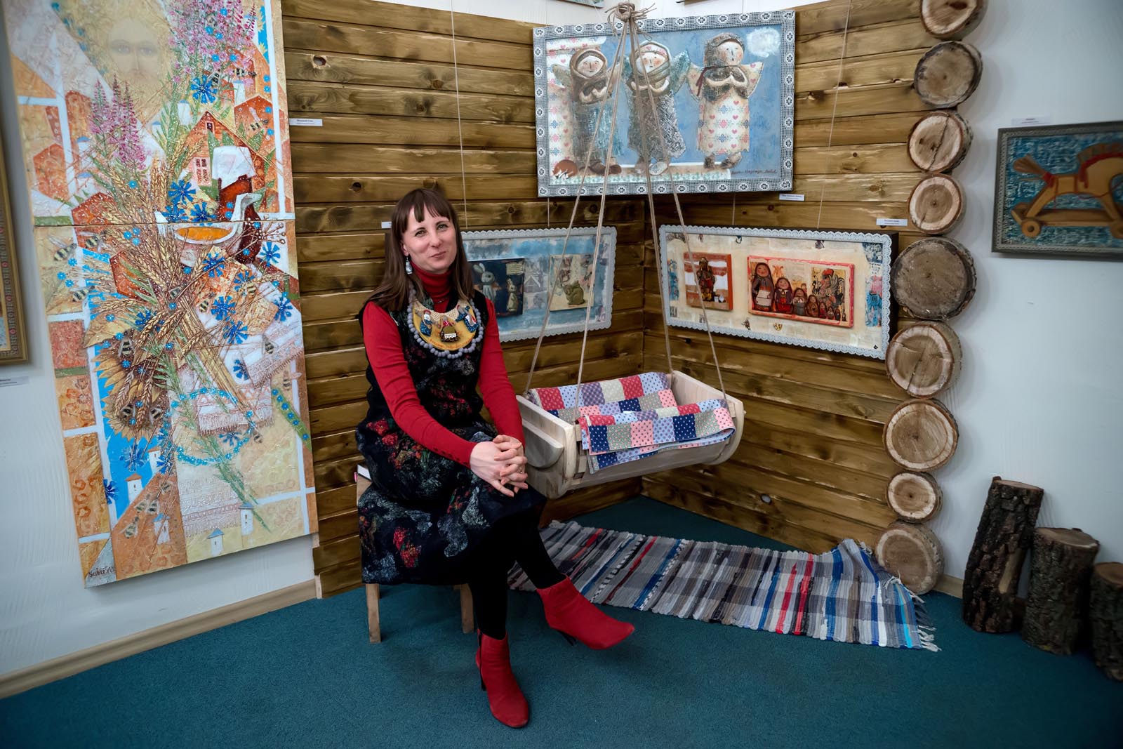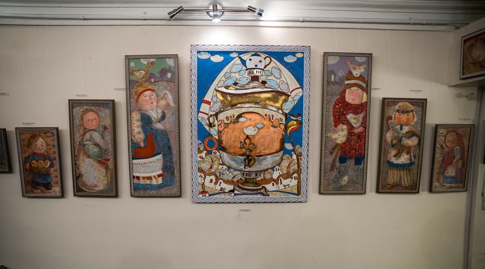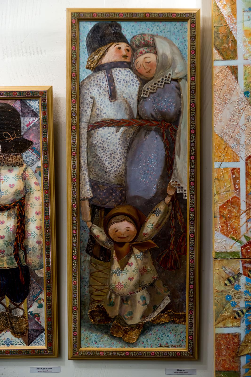 Тема русского народного творчества присутствовала, так или иначе, на всех выставках Елены Титовой. В экспозиции данной выставки есть работы, которые я уже, как зритель, видела в других проектах. Но есть и новые картины, написанные специально для «Благовеста». Сквозной линией через экспозицию проходит тема семьи и преемственности поколений.