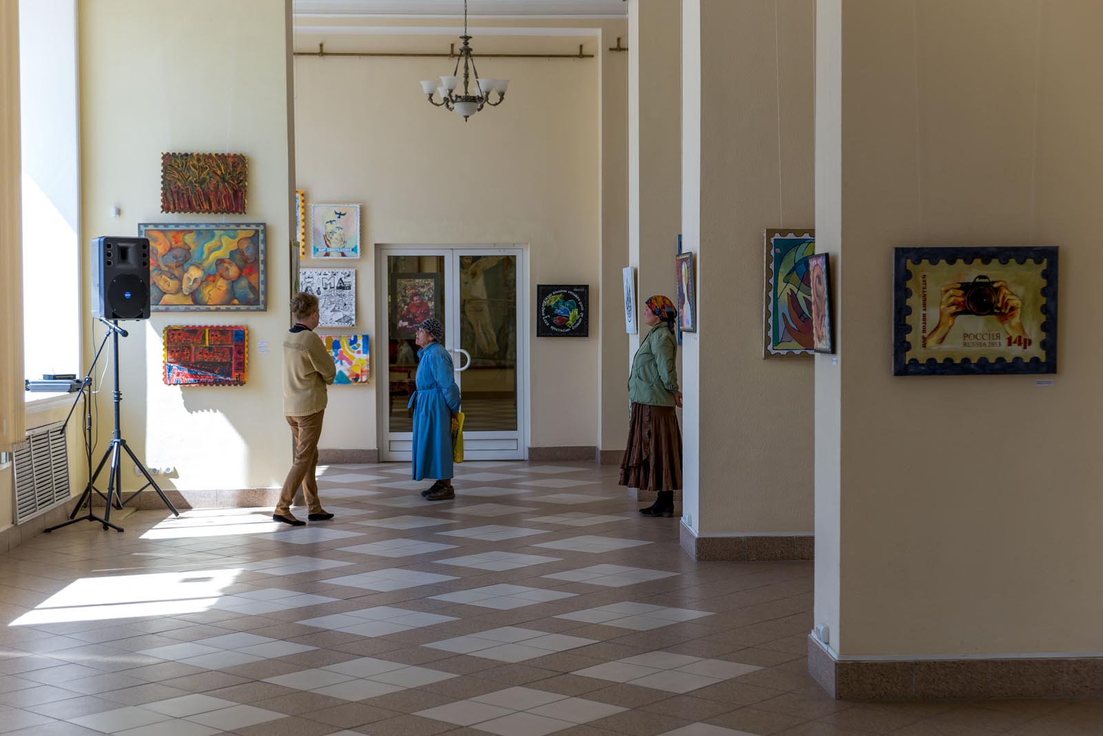Фото №293451. Регина Иксанова Набережные ЧелныПроект был камерный. Посредством шпалерной развески в экспозиции показаны картины, стилизованные под почтовые марки. Если включить воображение, то можно было представить себя в виде маленького человечка, стоящего у гигантского альбома и рассматривающего альбом филателиста.