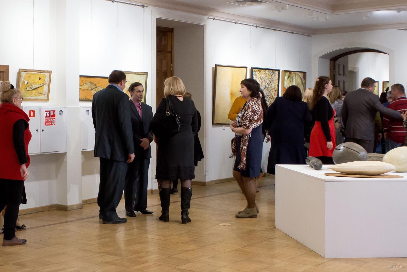 Фото №813040. Открытие выставки. Новиков А.В.Приятно удивило, что в Казани жив добротный абстракционизм «старой школы»: для произведений Новикова характерен синтез приемов традиционной живописи, эстетики русского авангарда и западного информального искусства — предметные образы на его полотнах соседствуют с экспрессивным началом. Несомненно также влияние сюрреализма, кубизма, импрессионизма и множества других стилей. В экспозиции есть, впрочем, и чисто реалистические работы.