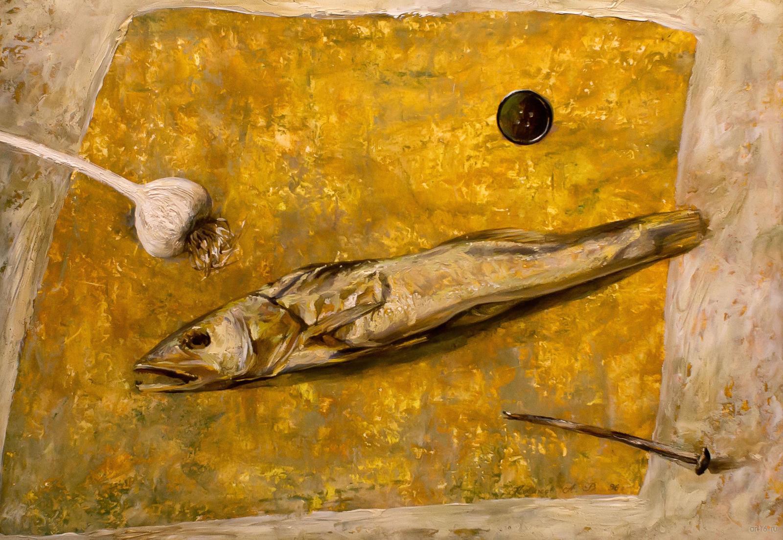 Фото №813088. Натюрморт с рыбой. 1996. Новиков А.В.картон, масло