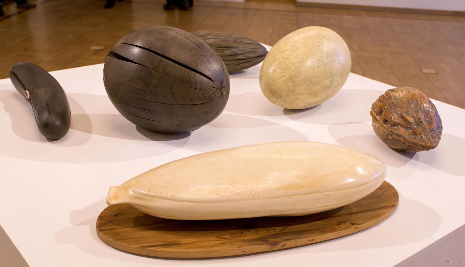 Фото №813166. Орех. Новиков А.В.Александр Васильевич работает во многих жанрах и использует различные материалы. Так, на этой выставке я впервые познакомился с Новиковым-скульптором — долго ходил вокруг постамента с его гигантскими «семенами» и «плодами», выполненными из разных сортов дерева, борясь с желанием потрогать их.