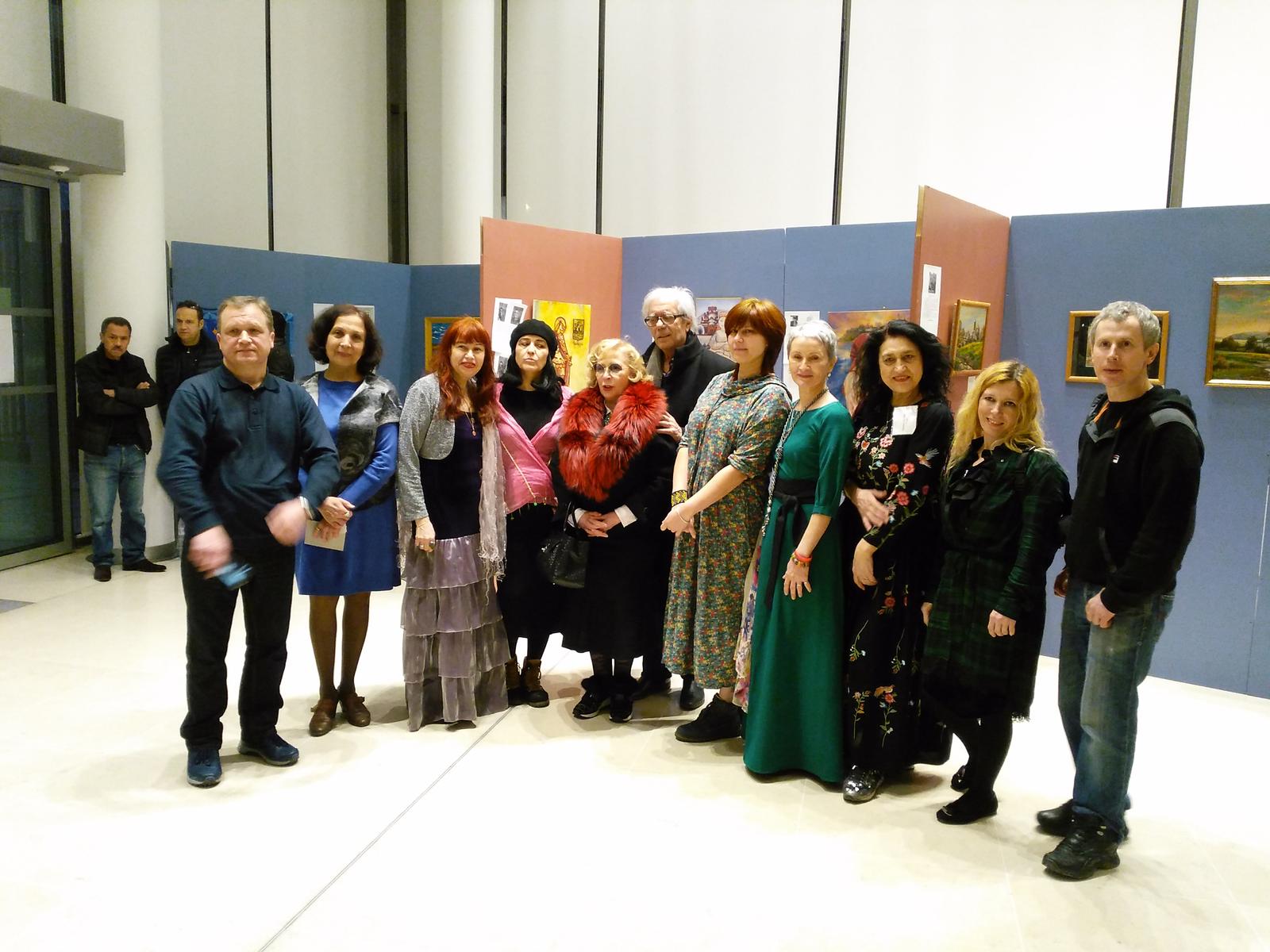 Фото №954764. Участники выставочного проекта в Париже ( Казанского отд. ПСХ ) в фойе амфитеатра Российского духовно-культурного православного центра в Париже (набережная Бранли, 1)