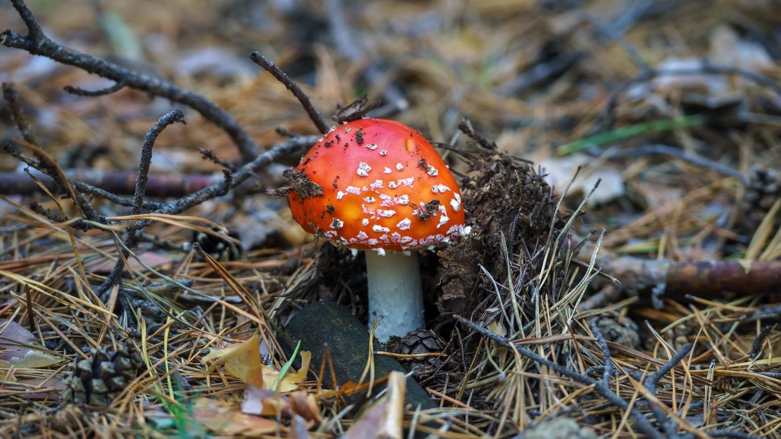 Фото №992760. ДятелИз под хвои на земле, то тут, то там выглядывают грибы. Чтобы найти съедобный гриб, надо постараться, приглядеться. А вот эти красавцы семафорят издалека.