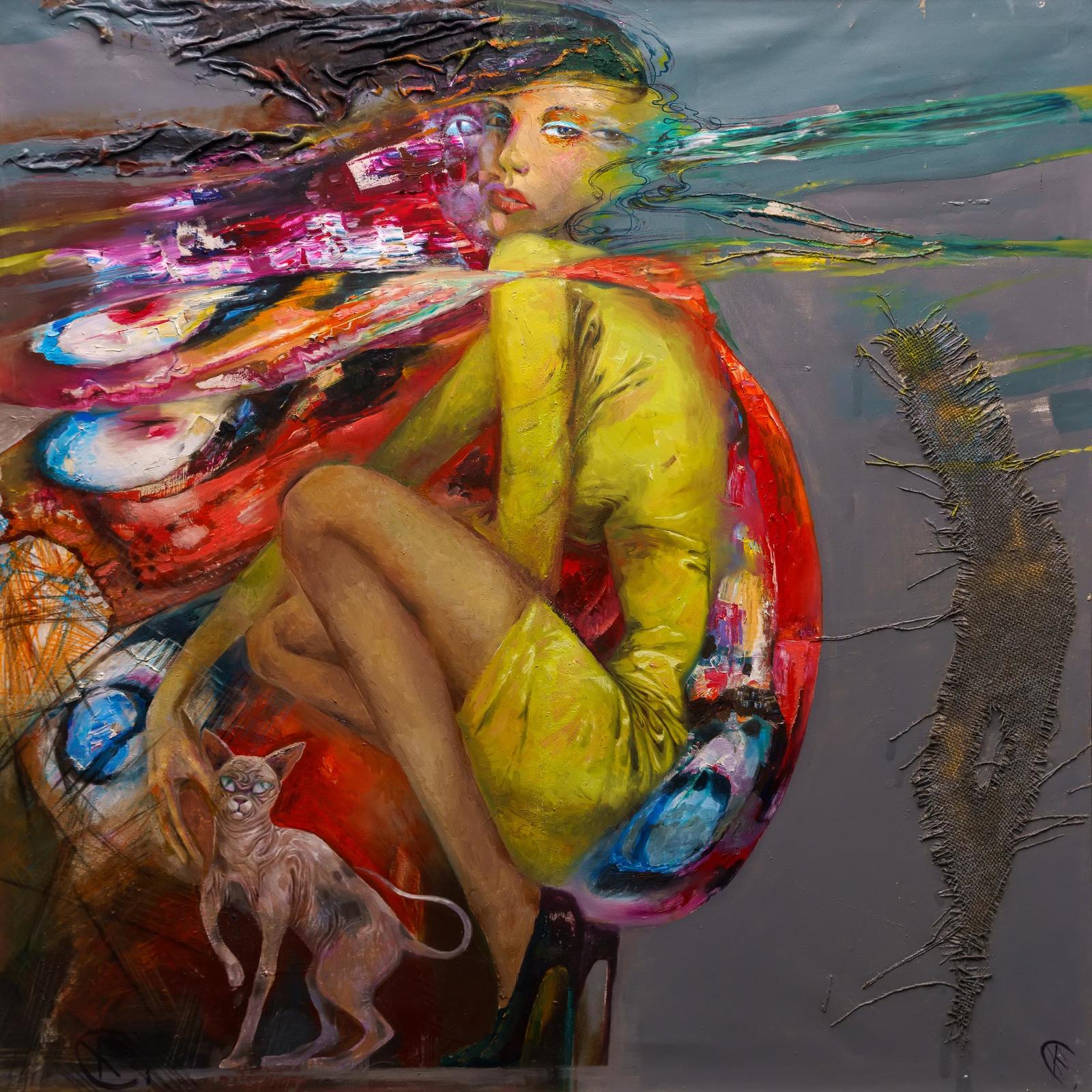 Фото №999076. Когда ты была кошкой. 2020. Ханафеев Ринатхолст, масло, 90*90
