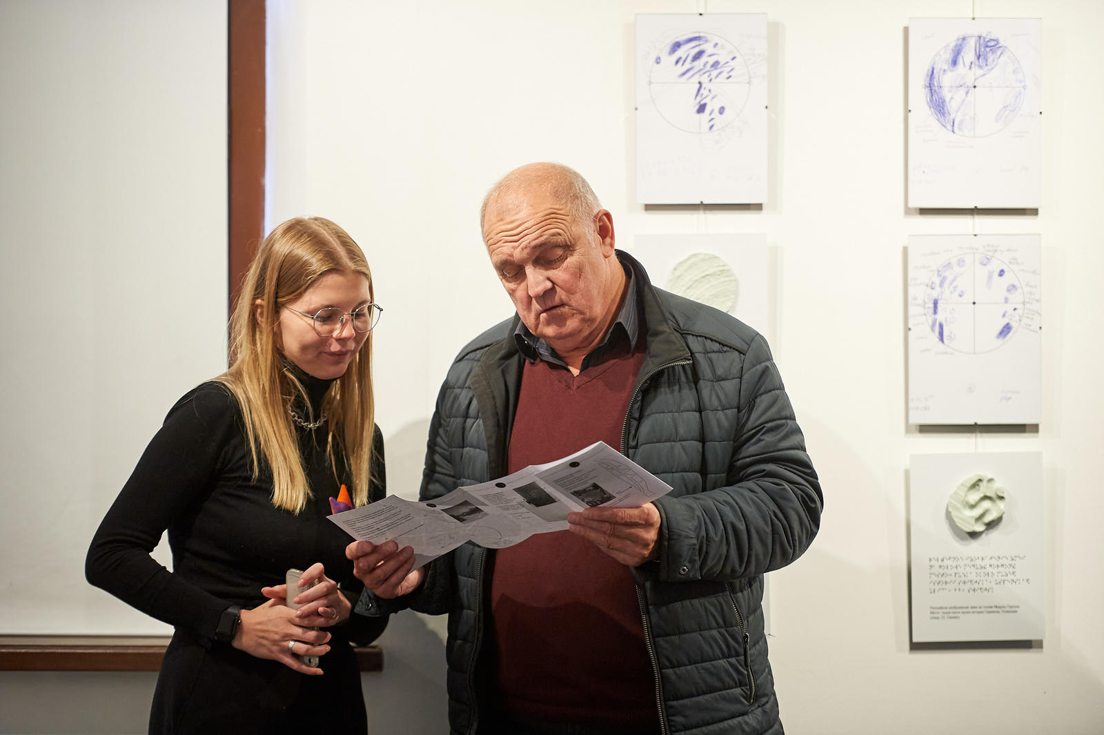 На открытии куратор выставки Алиса Николаева рассказала о каждом из шести арт-объектов подробно. «Это прекрасно, что сегодня мы можем говорить о современном искусстве, которое зачастую кажется сложным и непонятным на доступном языке инклюзивной культуры. Призываю вас исследовать выставку, работы, находить в них новые смыслы и попробовать понять мир с другой точки зрения», — обратилась она ко всем присутствующим.