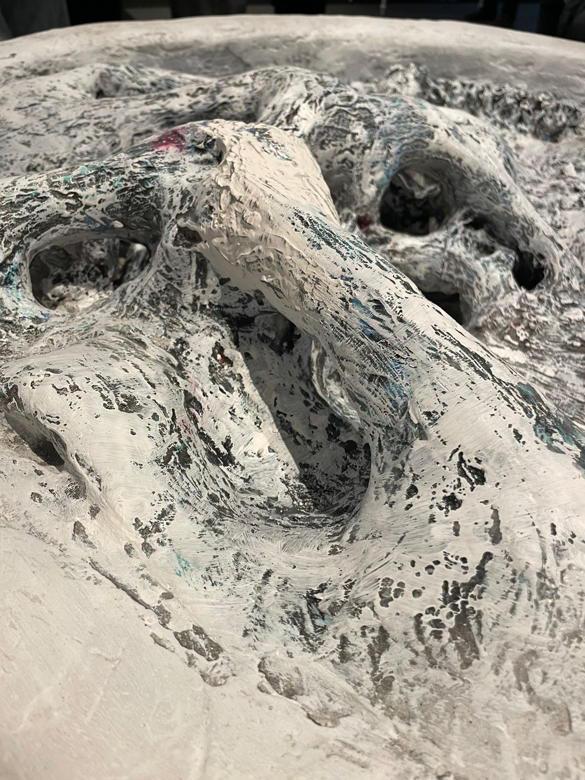 Для каждого человека время протекает по-своему. Эта инсталляция – его отражение. Что это? Застывшие блики на водной глади или отпечатки на песчаном дне, бездонный колодец со своими тайнами и бесконечной игрой отражений или поверхность Луны, оказавшейся вдруг так близко.